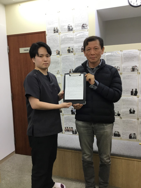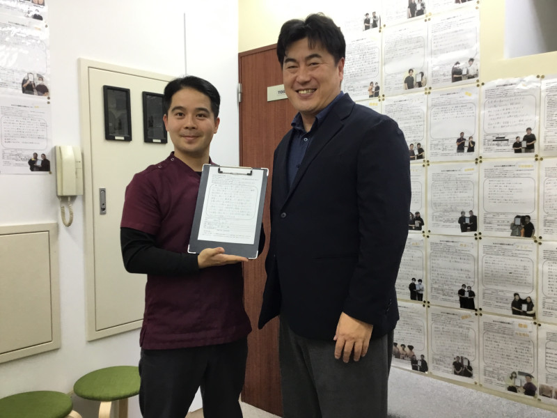 それから約2か月が経ち腰痛も楽になり、それ以外にも、左手中指の痺れも徐々に改善してきました。単なる部分部分の痛みを取るのではなく、全体を見て施術をして頂き、とても感謝しています。ありがとうございます。